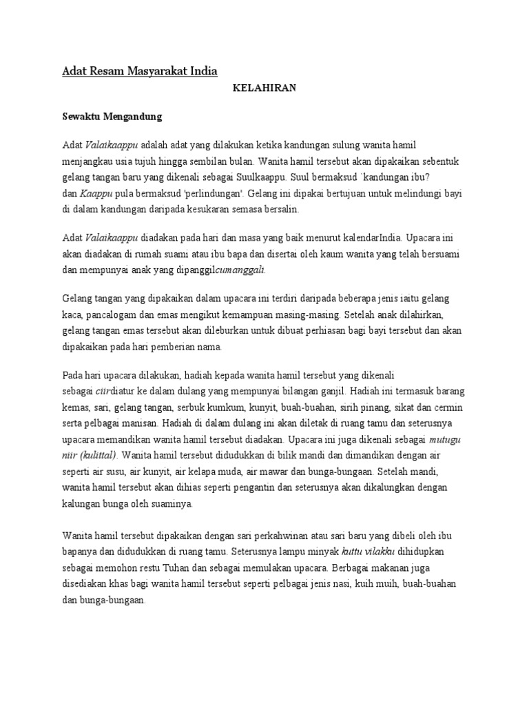 Adat perkahwinan kaum india di malaysia pengenalan sejarah adat resam perkahwinan, tujuan dan aspek aspek yang berkaitan dengan perkahwinan aspek tradisi, sosial dan budaya aspek persediaan sebelum istiadat perkahwinan merisik, bertunang dll merisik merisik juga merupakan peringkat yang. Berikan tiga contoh dari adat resam kaum india? Adat perkahwinan masyarakat melayu sarawak mempunyai banyak persamaan dengan adat sama masyarakat melayu di semenanjung. Antara objektif yang telah dibincangkan adalah Orang minangkabau merupakan penduduk asal kawasan sumatera barat, indonesia.